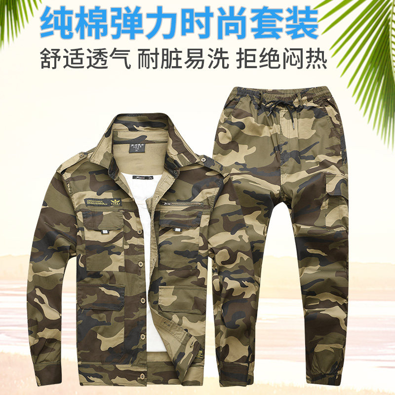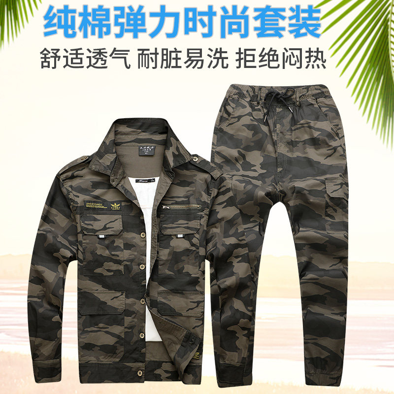 纯棉弹力工作服夏季春秋劳保电焊工地防烫建筑休闲户外男女迷彩服