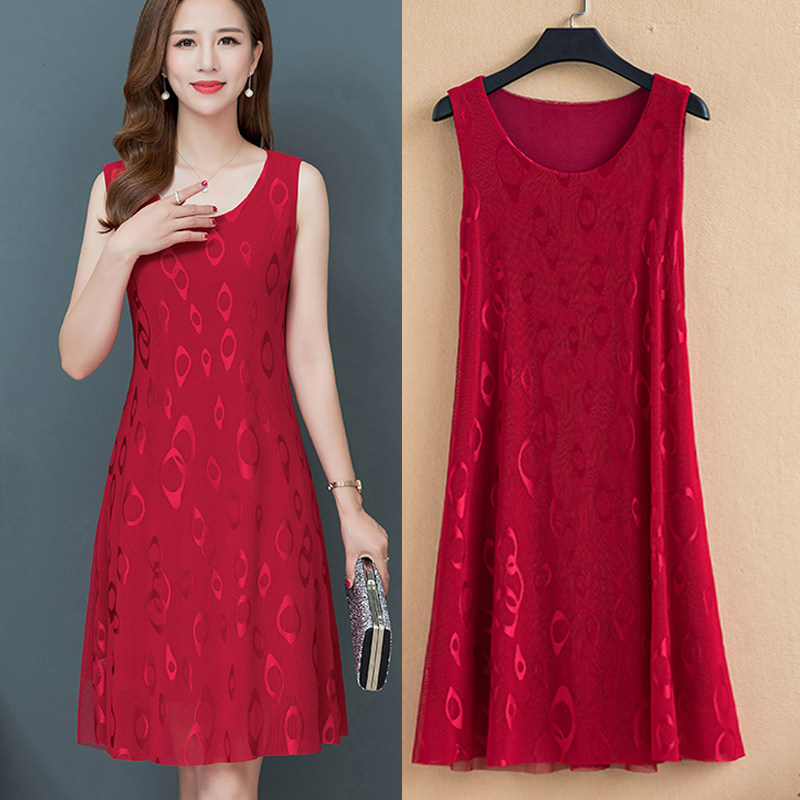夏季冰丝吊带裙女中长款外穿无袖连衣裙加L肥大码宽松打底裙背心