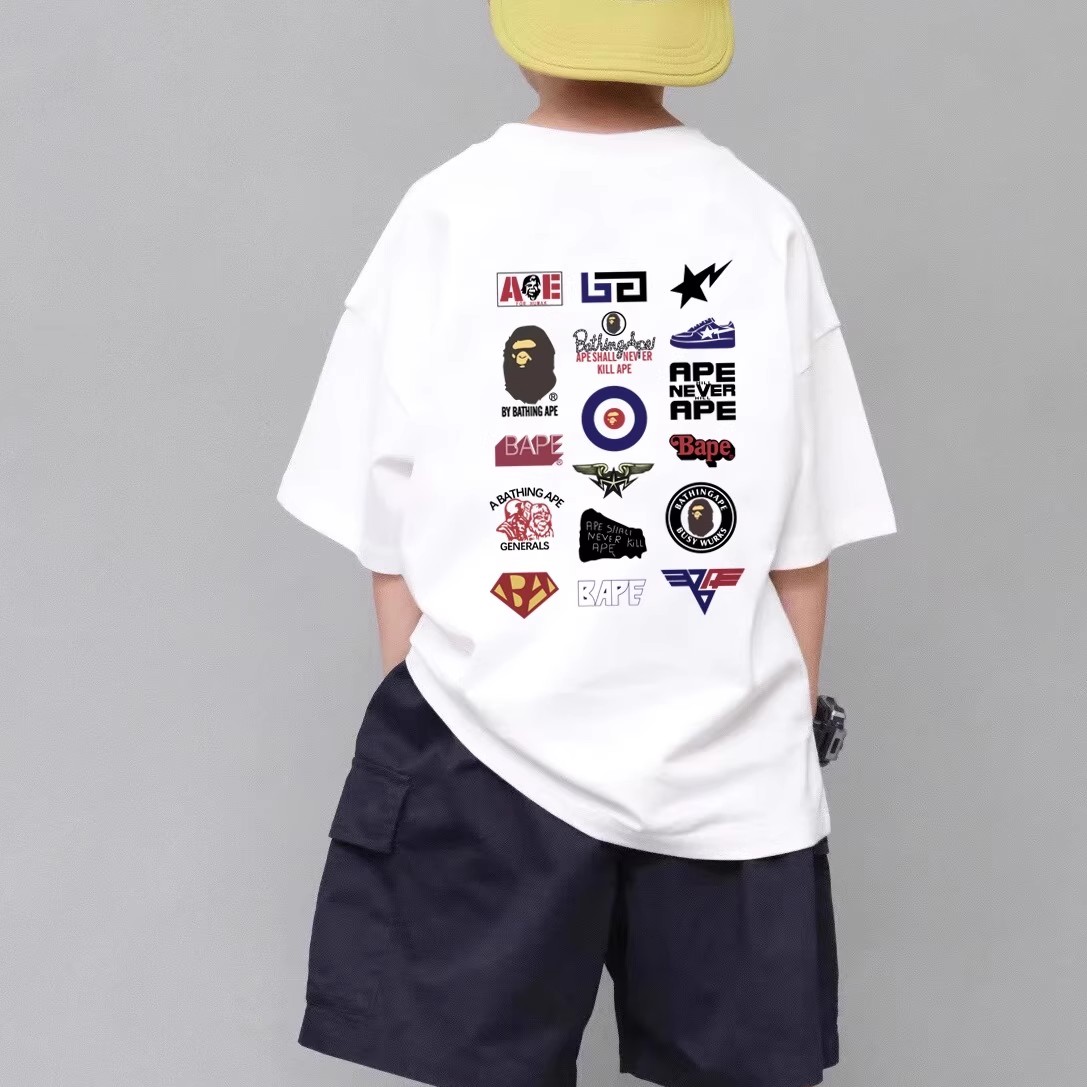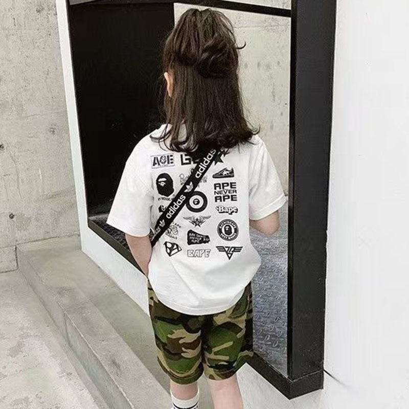 夏季BAPE儿童短袖t恤潮牌男女纯棉宽松猿人头SHARKAPE洋气亲子装
