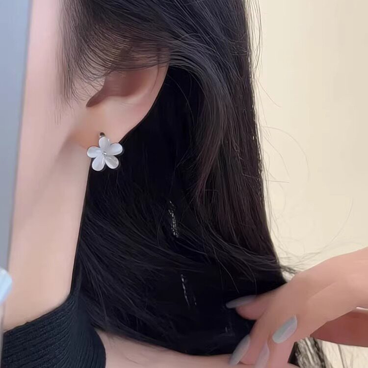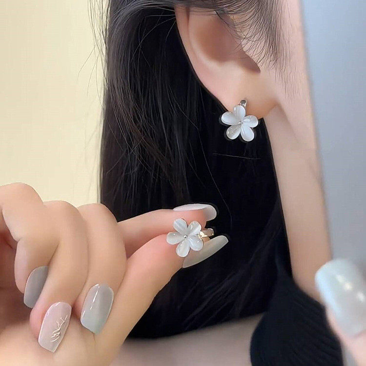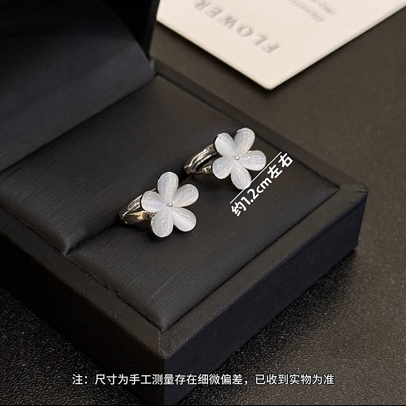 s925银针耳饰猫眼石冰透花朵耳扣轻奢小众精致时尚百搭气质耳环女