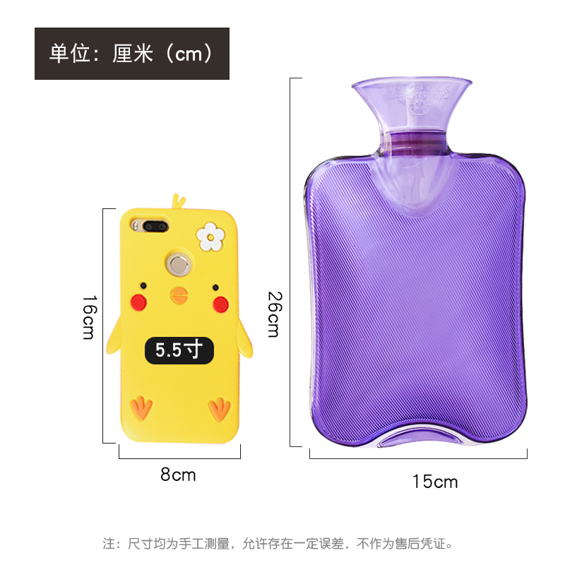 加厚PVC注水热水袋1L中号暖水袋成人暖宫方形灌水热水袋送绒布套
