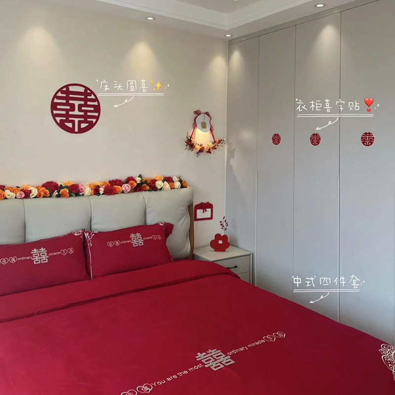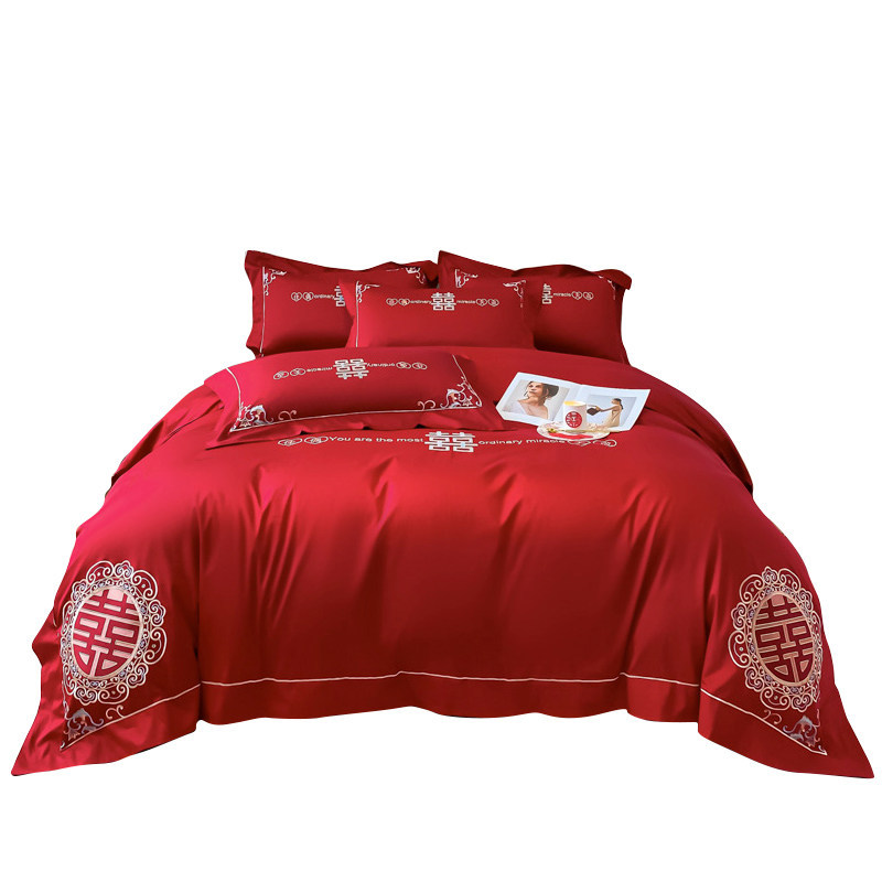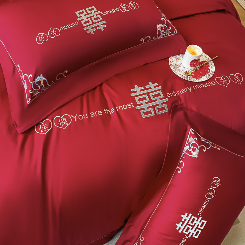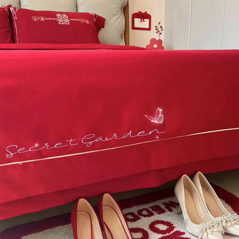 乐优公主100支长绒q棉结婚四件套婚庆大红色床单喜被婚嫁床上用品