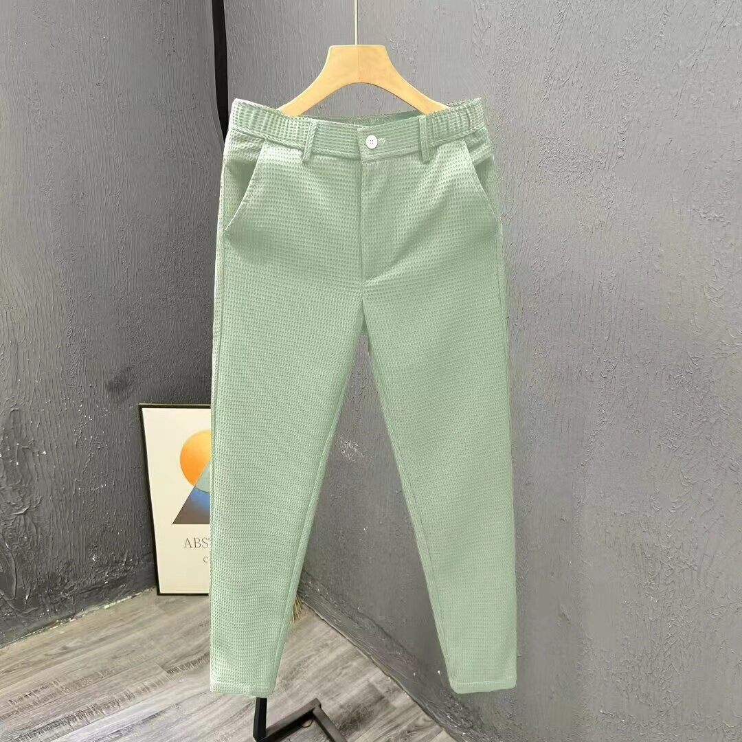 韩版禁欲系夏季休闲西裤男修身小脚直筒痞帅华夫格坠感西装九分裤