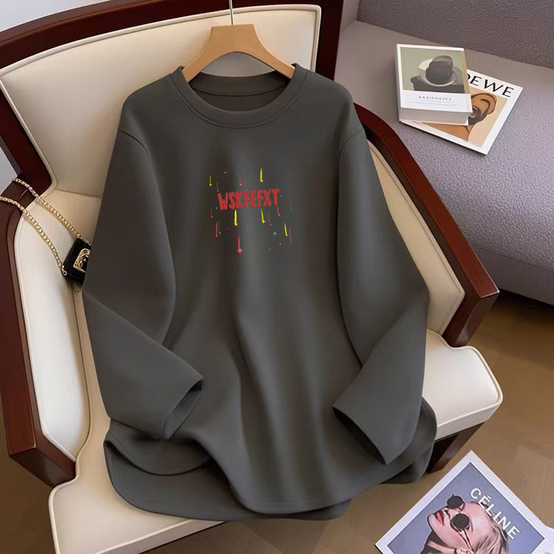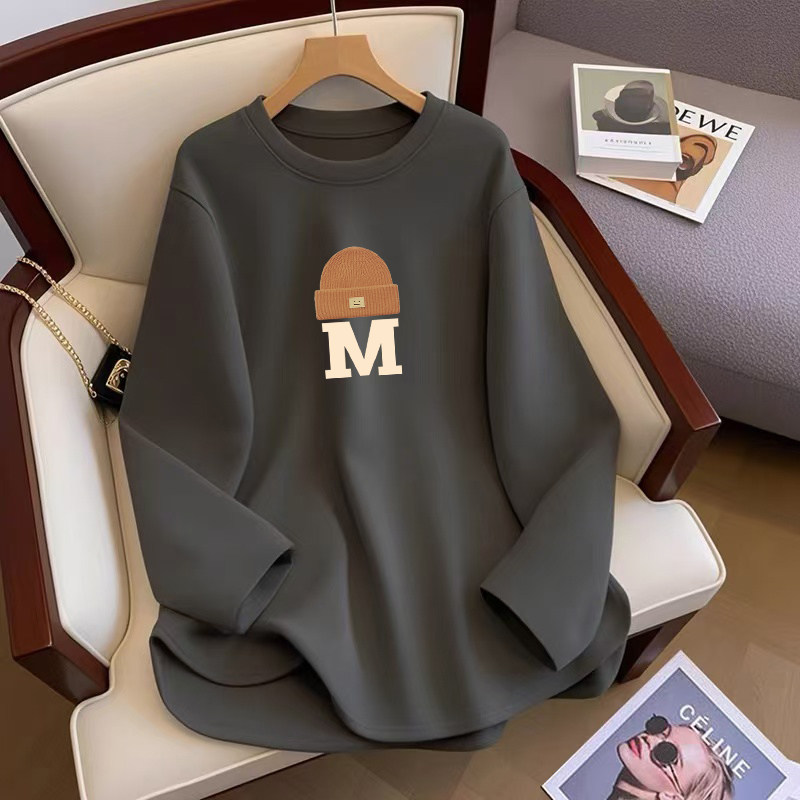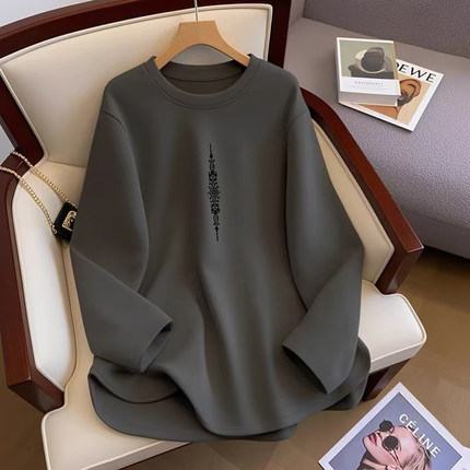 中长款纯棉T恤女宽松遮屁股上衣春秋冬内搭小个子加厚磨毛打底衫
