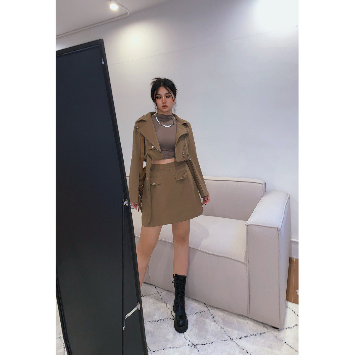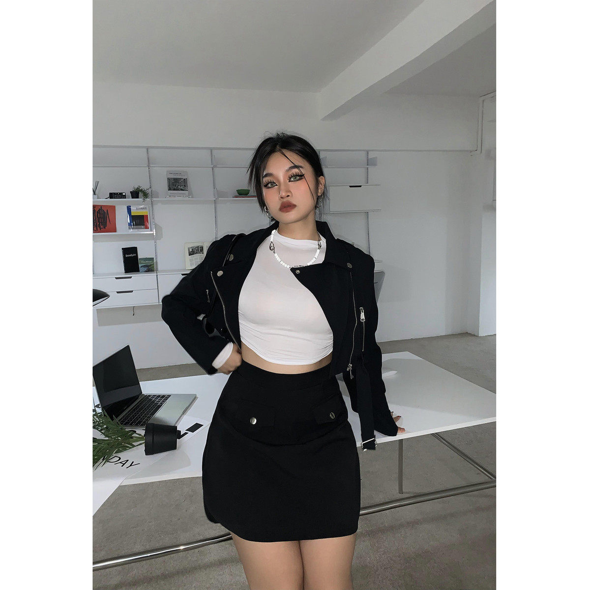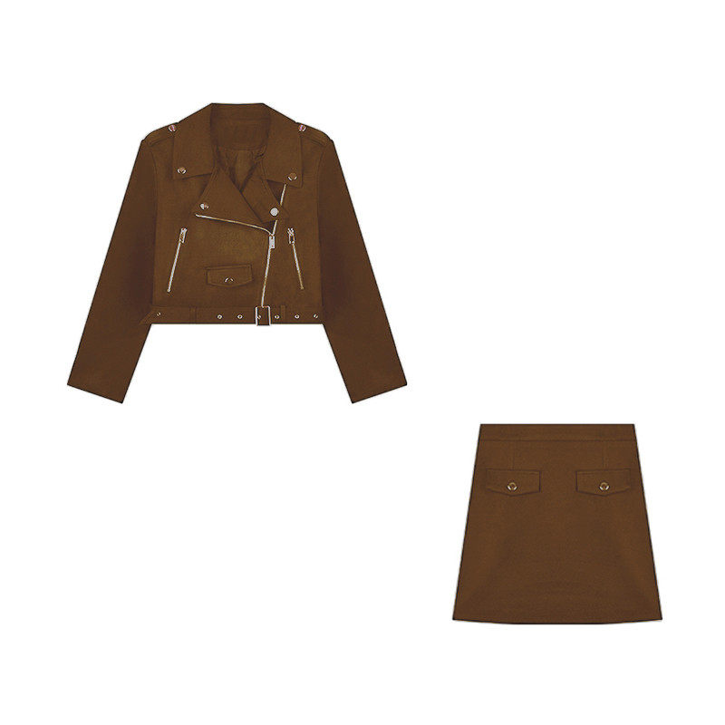 楠哥微胖辣妹套装裙女秋冬大码胖mm显瘦短款机车两件套