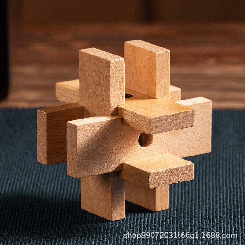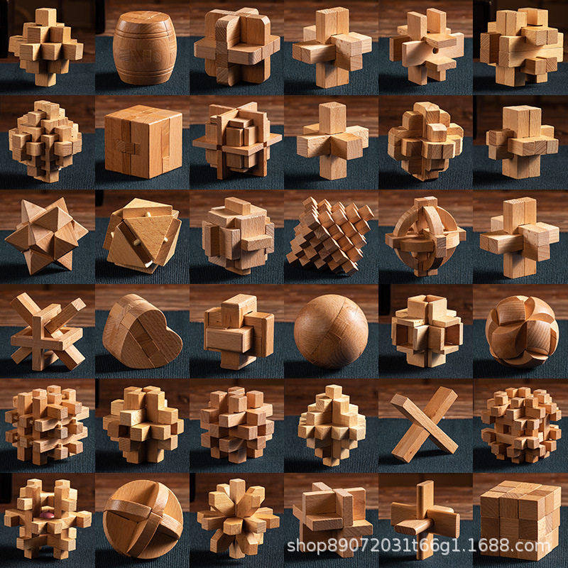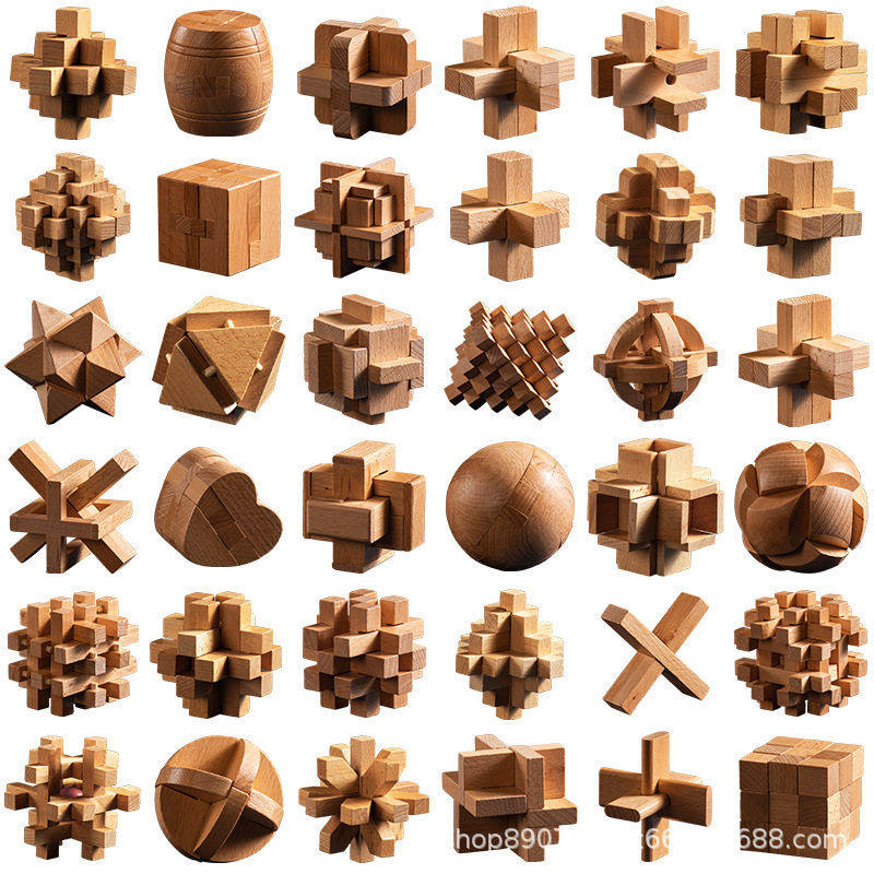 孔明锁鲁班锁全套智力解环套装木制小学生九连环益智玩具六片拼