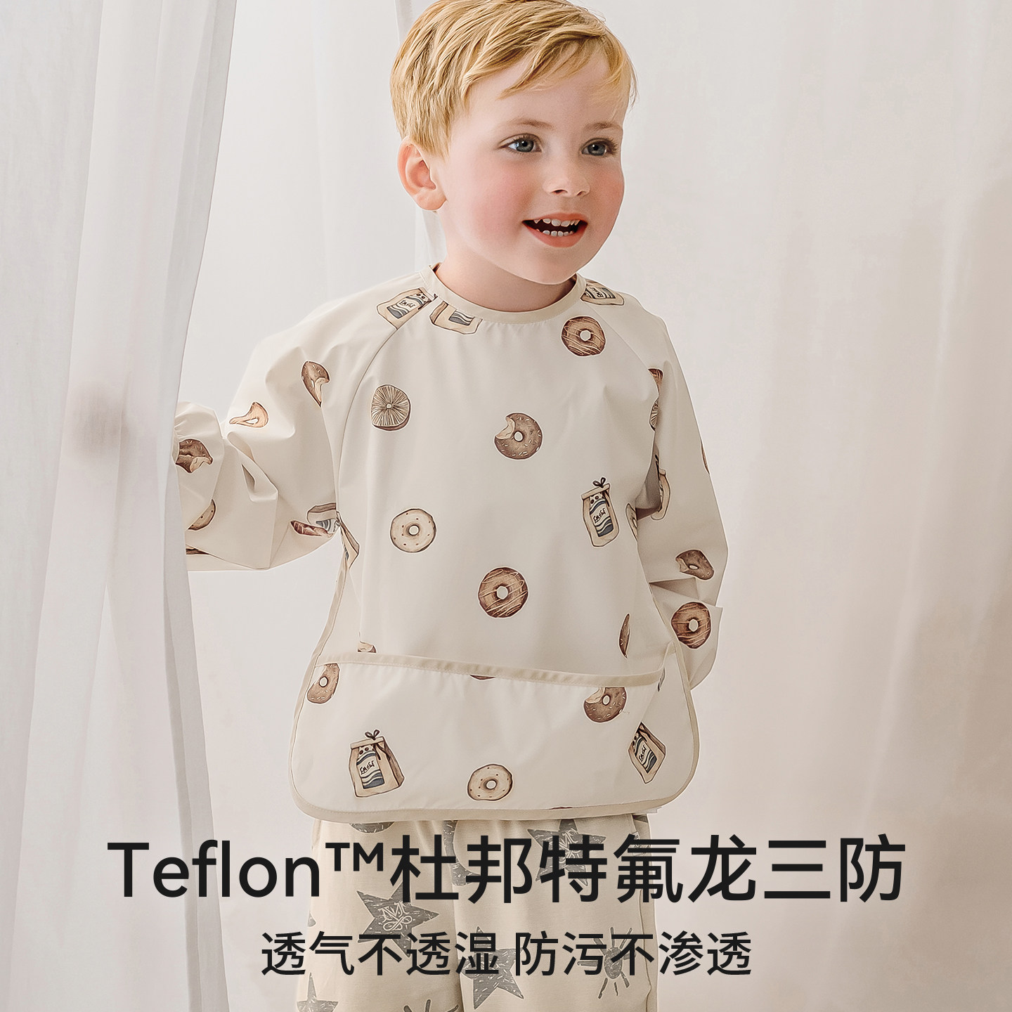 【新品】嫚熙婴儿宝宝吃饭罩衣围兜防水防脏辅食反穿衣饭兜罩衣