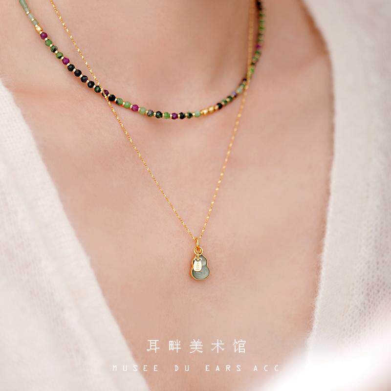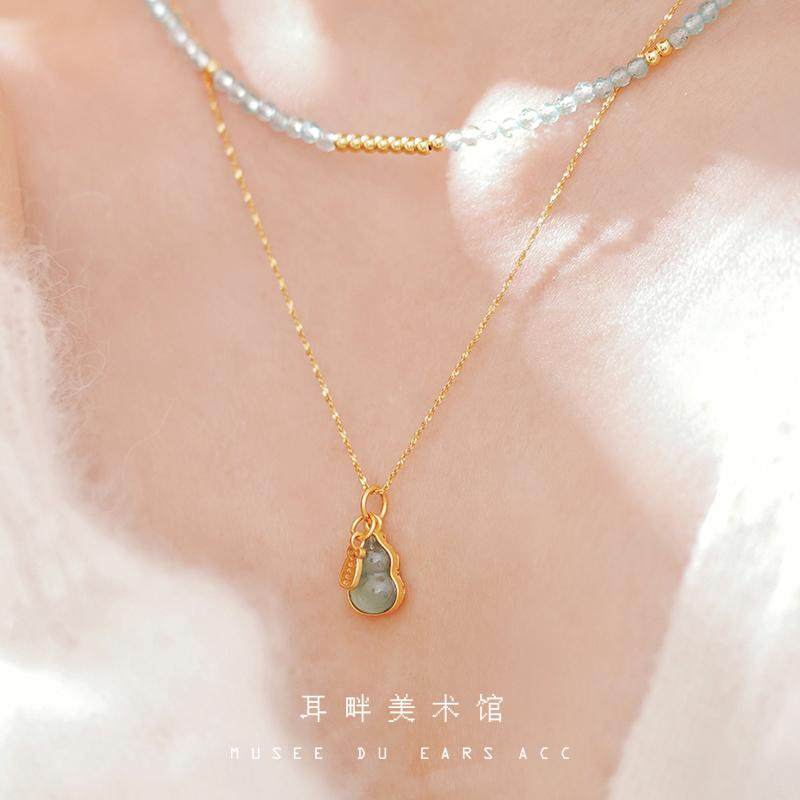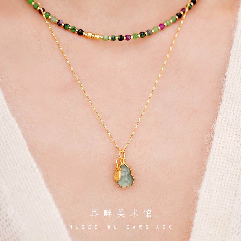 A如意小葫芦双面可戴天然蓝水翡翠s925银项链新中式国风