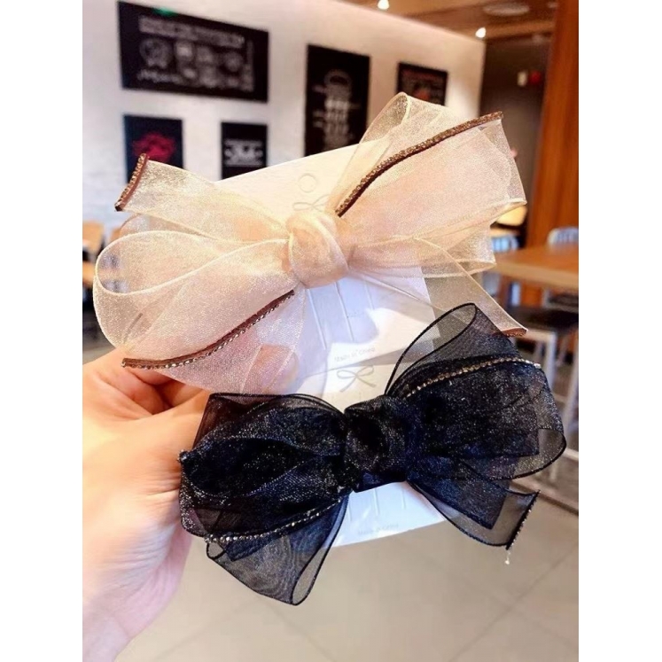 网红欧根纱蝴蝶结发夹女后脑勺低丸子头发饰马尾发卡森系仙美头饰