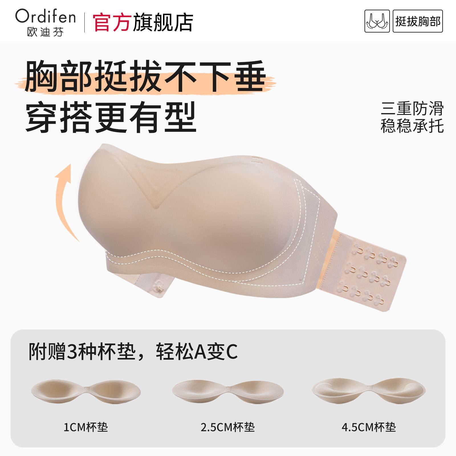 欧迪芬无肩带内衣女防滑抹胸式文胸粉底液隐形聚拢无痕美背裹胸罩