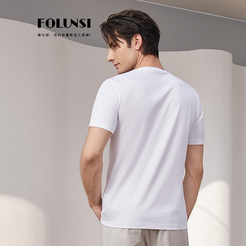 佛伦斯folunsi男士t恤短袖男夏季男装白色商务休闲棉弹透气半袖