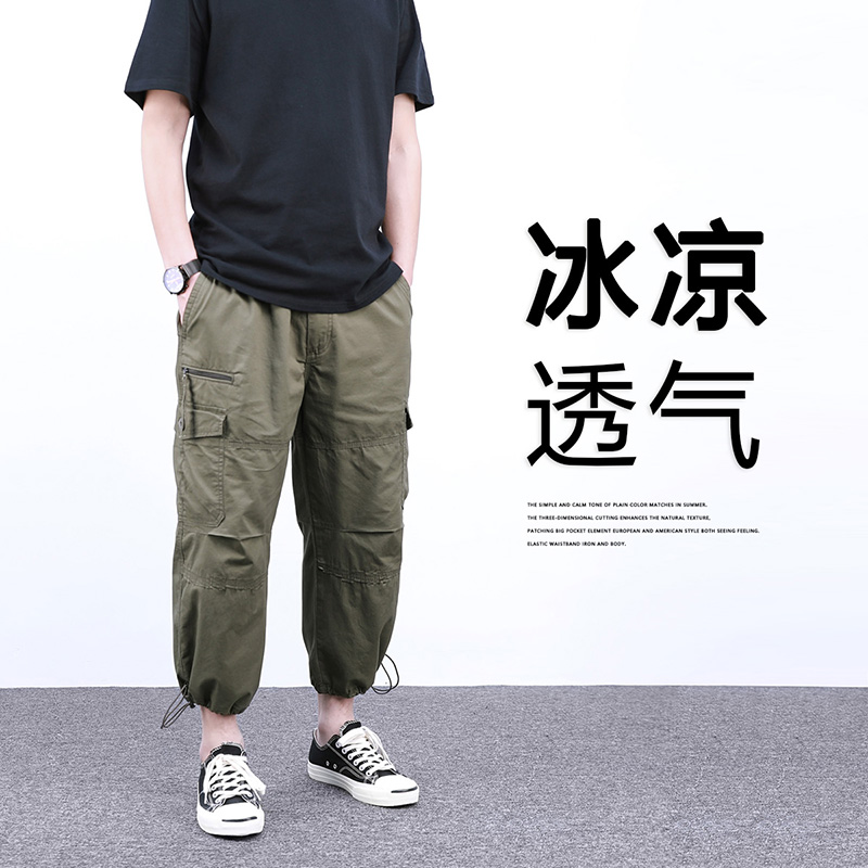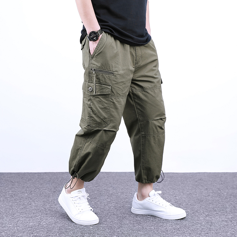 夏季男士八分裤男休闲裤宽松纯棉直筒裤青年七分裤工装裤短裤潮流
