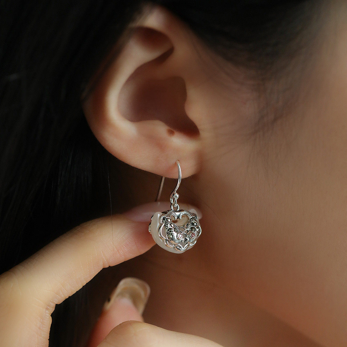 925银玉髓长命锁耳坠耳钩2025年高级感时尚民族风耳环女耳饰