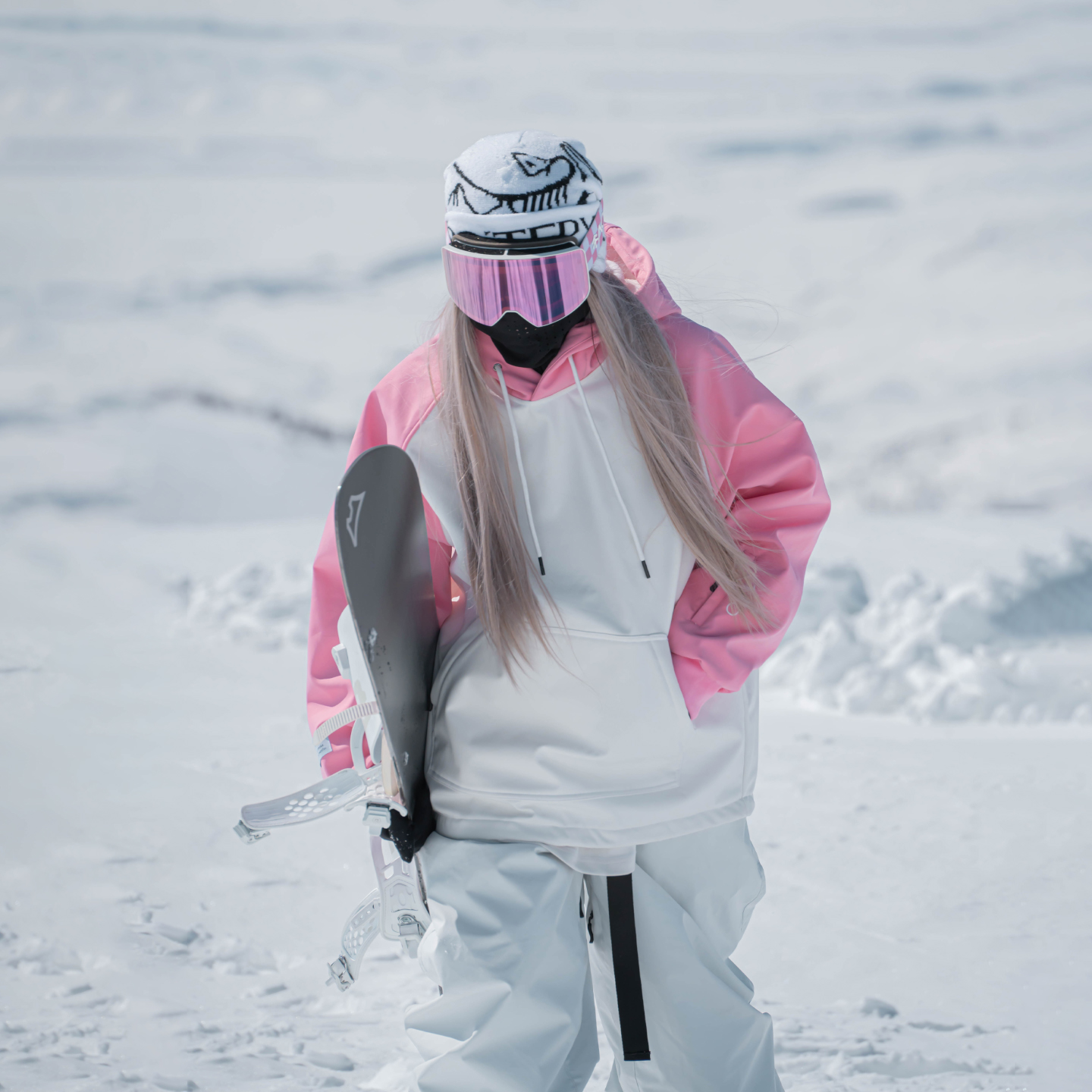 雪否 粉色单板滑雪防水over size宽松加绒 透气男女室内滑雪卫衣
