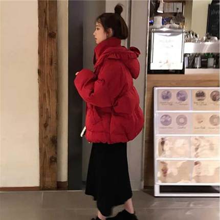 冬季棉服女小个子红色羽绒棉服短款可爱学生加厚棉服外套女甜美潮
