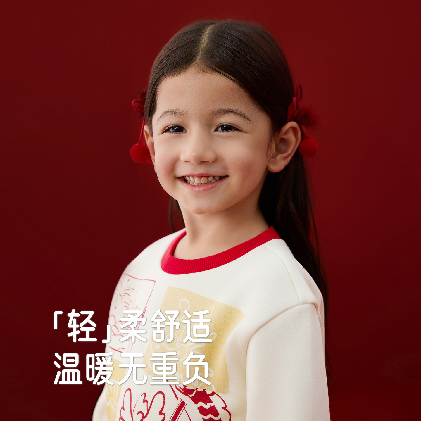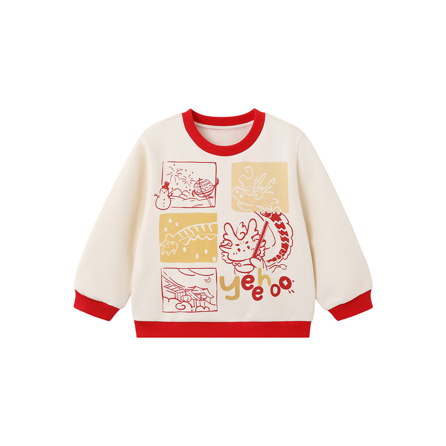 英氏儿童卫衣针织圆领男童女童春秋春季新款套头上衣新年红色喜庆