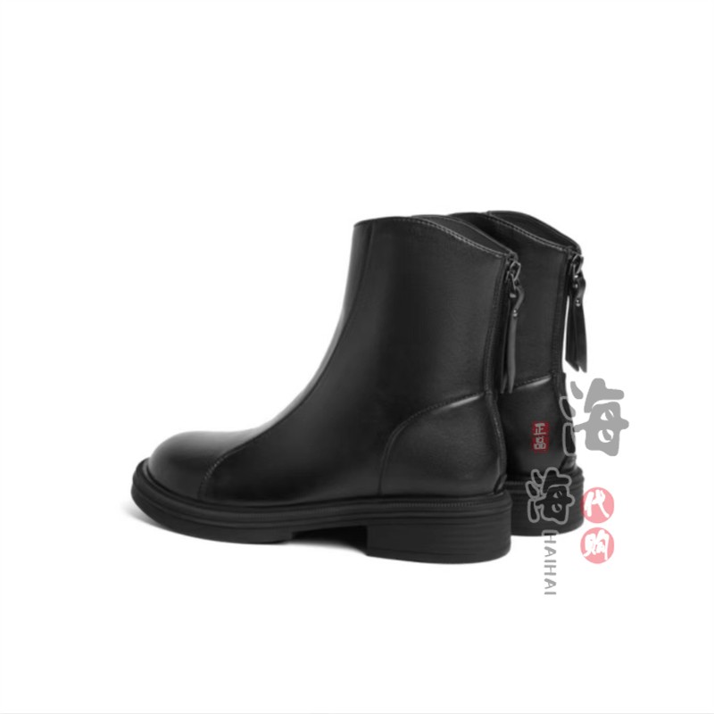 BELLE百丽2023冬季休闲拉链圆头女鞋短筒靴国内正品代购A2P1D DD3