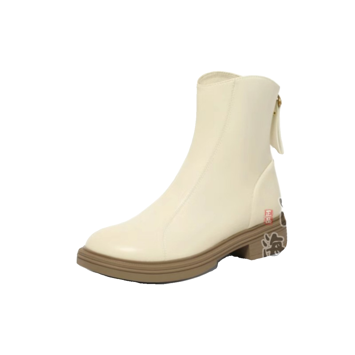 百丽冬季休闲拉链圆头女鞋短筒靴