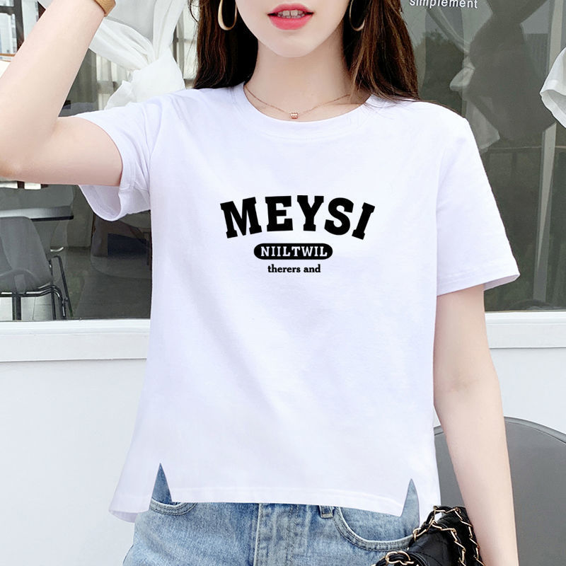 白色纯棉女士t恤短袖夏季韩版宽松休闲洋气高腰短款开叉半袖上衣
