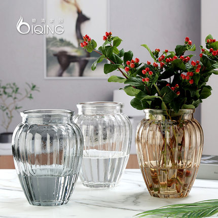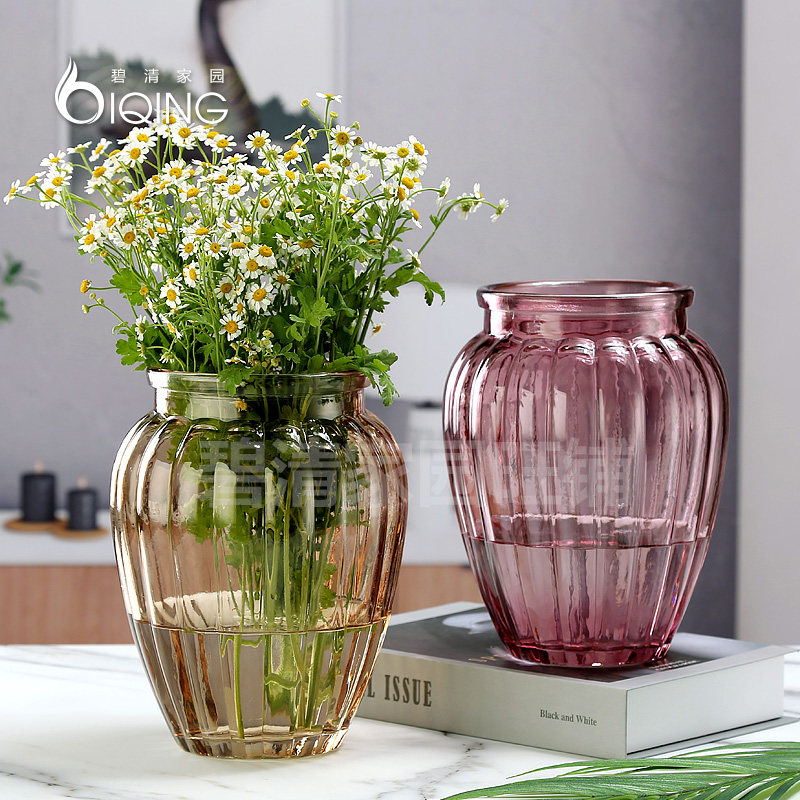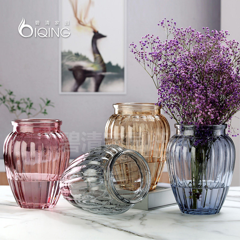 彩色透明胖肚子玻璃花瓶创意清新欧式桌面客厅插干花鲜花水竹家居