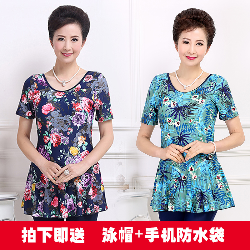 2025新款游泳衣女夏中老年妈妈保守连体裙式遮肚显瘦大码温泉泳装