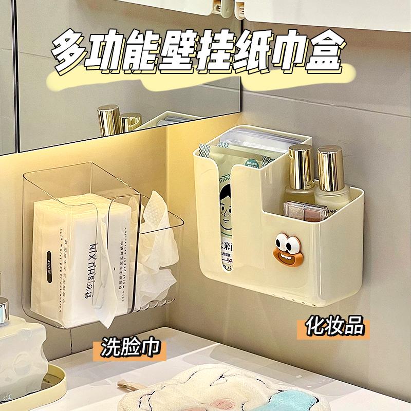 浴室洗漱台纸巾收纳盒壁挂免打孔洗脸巾抽纸盒卫生间置物架镜柜