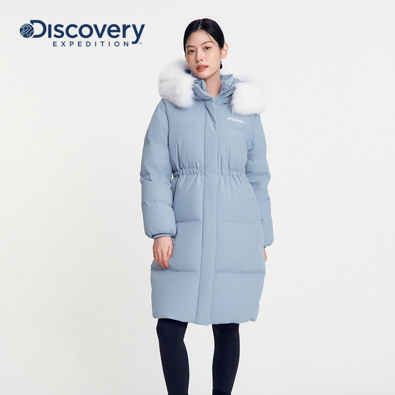 Discovery探索户外长款90鹅绒700蓬加厚保暖毛领连帽羽绒服女冬