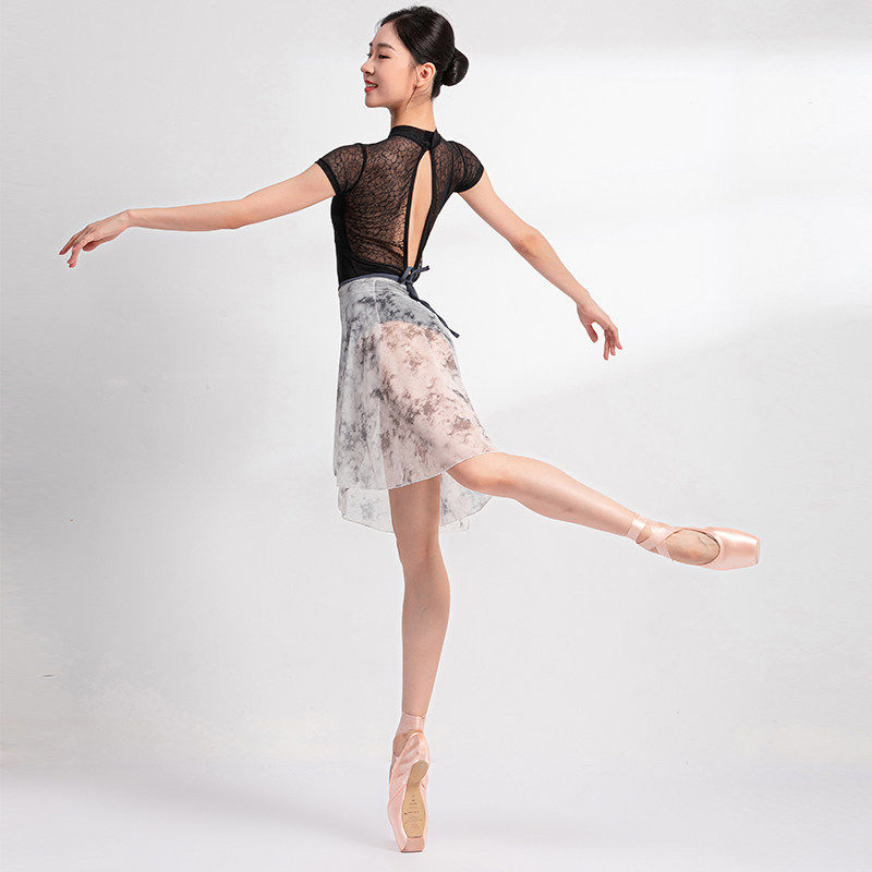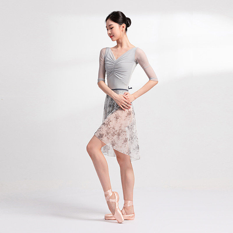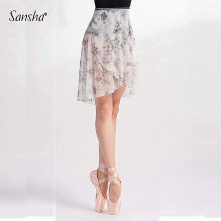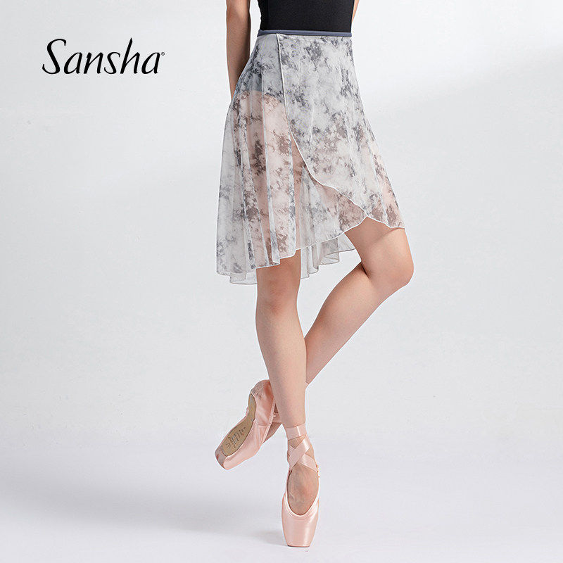 Sansha 三沙芭蕾舞半身裙 成人女网纱晕染系带半身裙艺术印花中裙