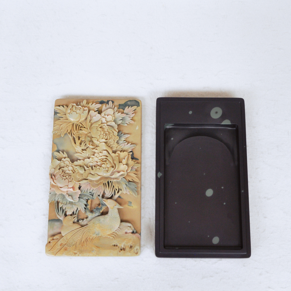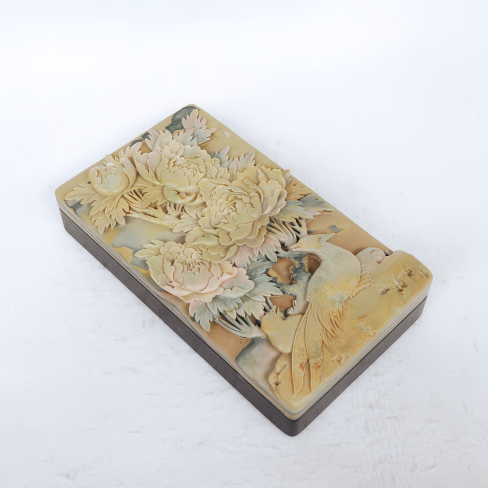 攀枝花苴却砚手工雕刻精品花鸟盖砚锦上添花大尺寸盖砚收藏石品