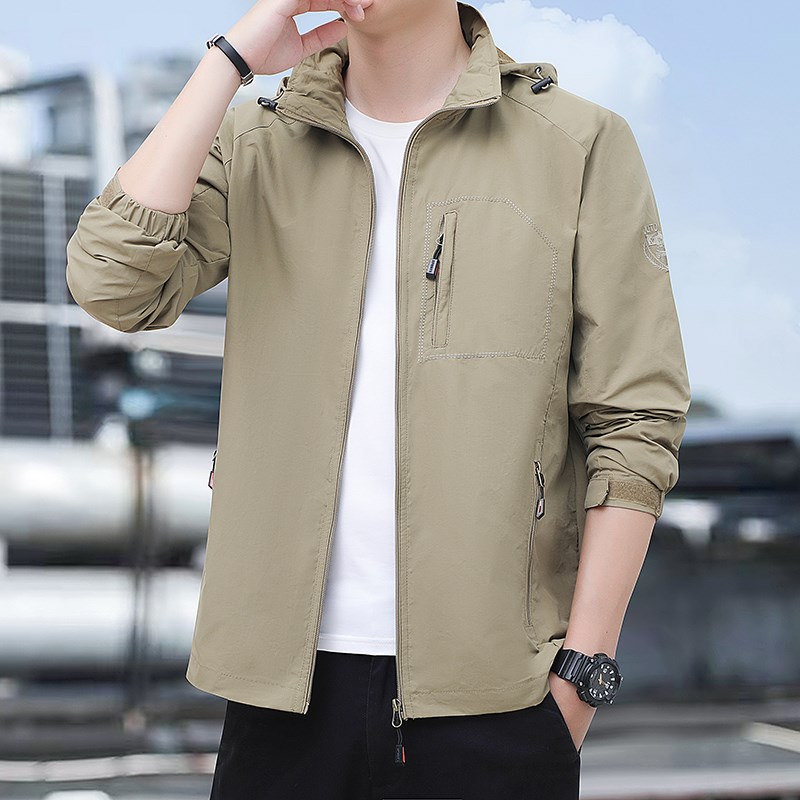 秋季薄款外套冲锋衣休闲宽松可拆帽夹克中青年男装大码多袋上衣服