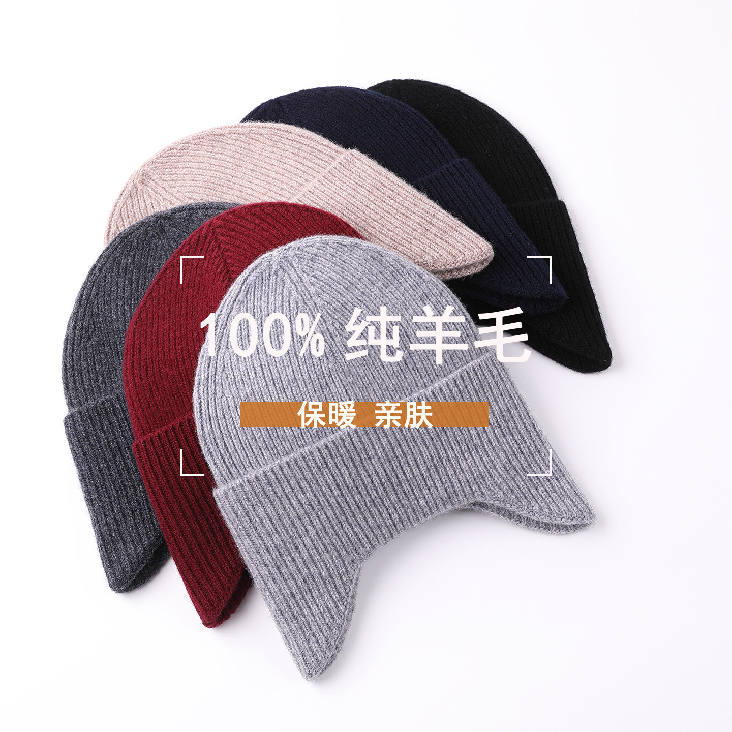 100%纯羊毛帽子男士加厚款冬天针织帽保暖防寒护耳帽高档2025新款