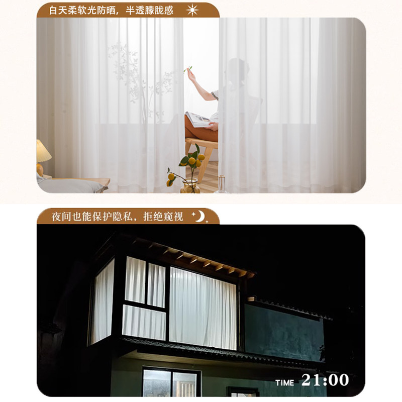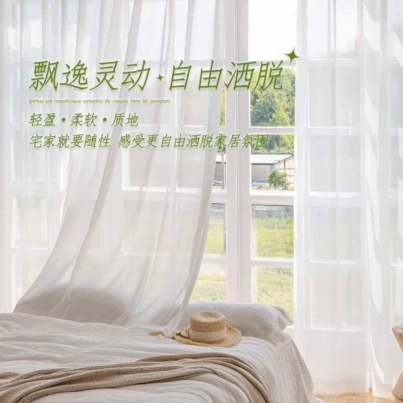 白色窗帘卧室窗纱金刚纱透光不透人阳台飘窗客厅纱帘2024新款白纱
