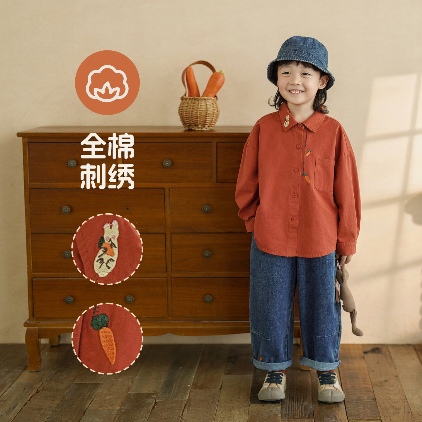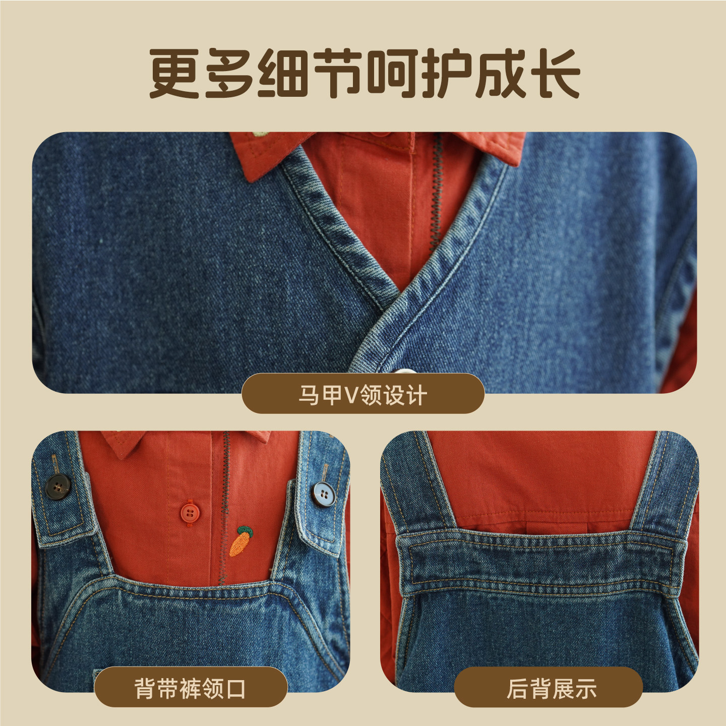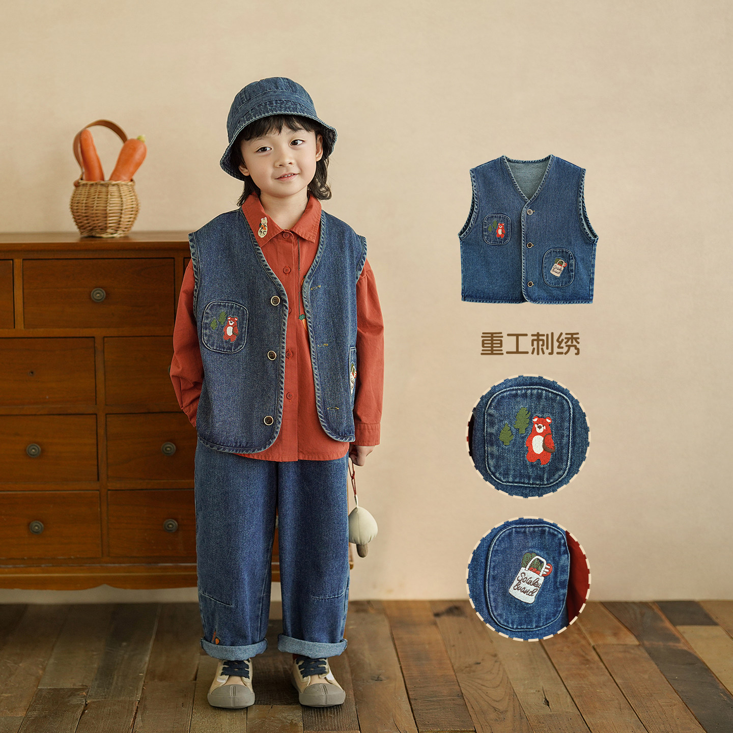 砚台家童装儿童衬衫套装秋新款马甲男童卡通刺绣背带裤男孩萝卜裤
