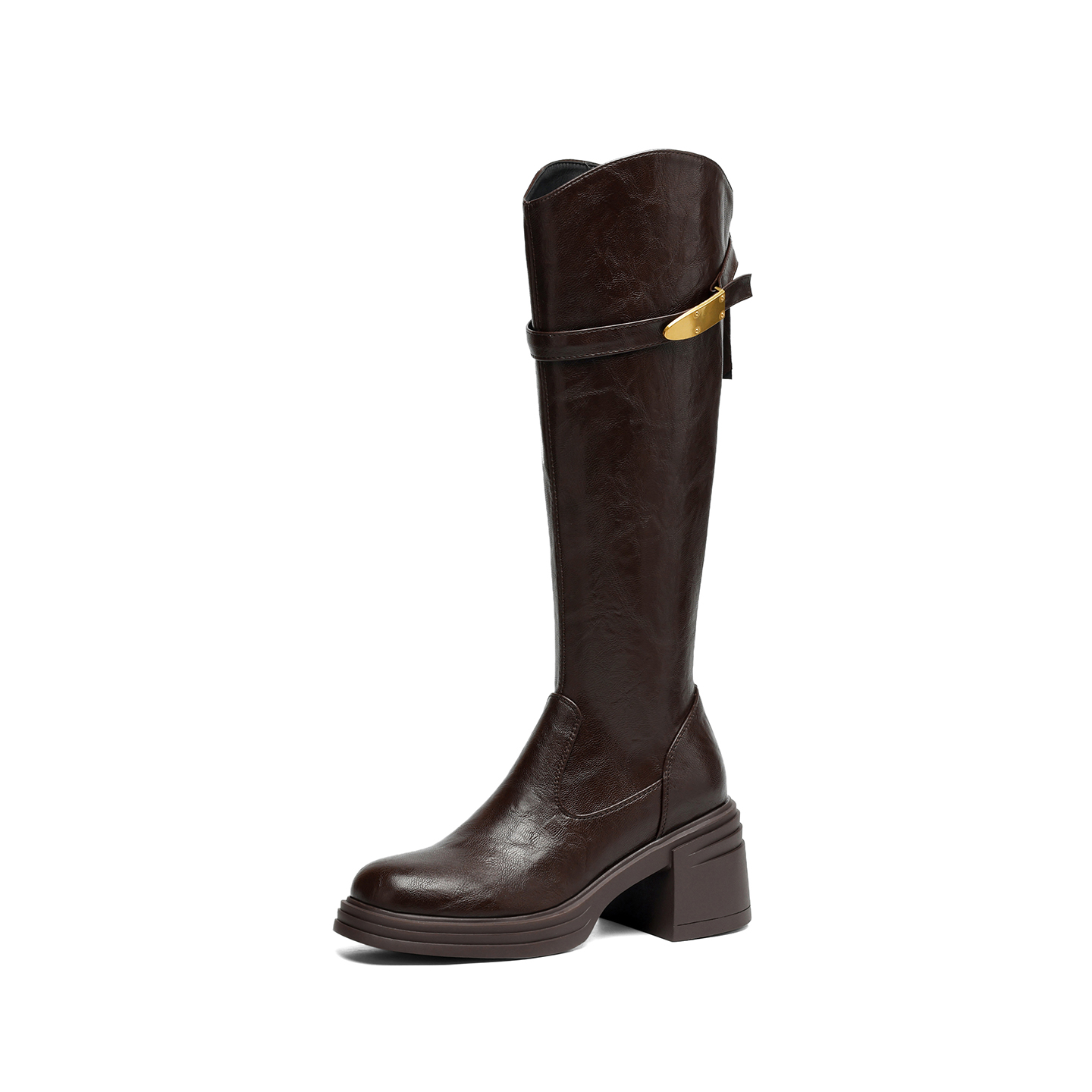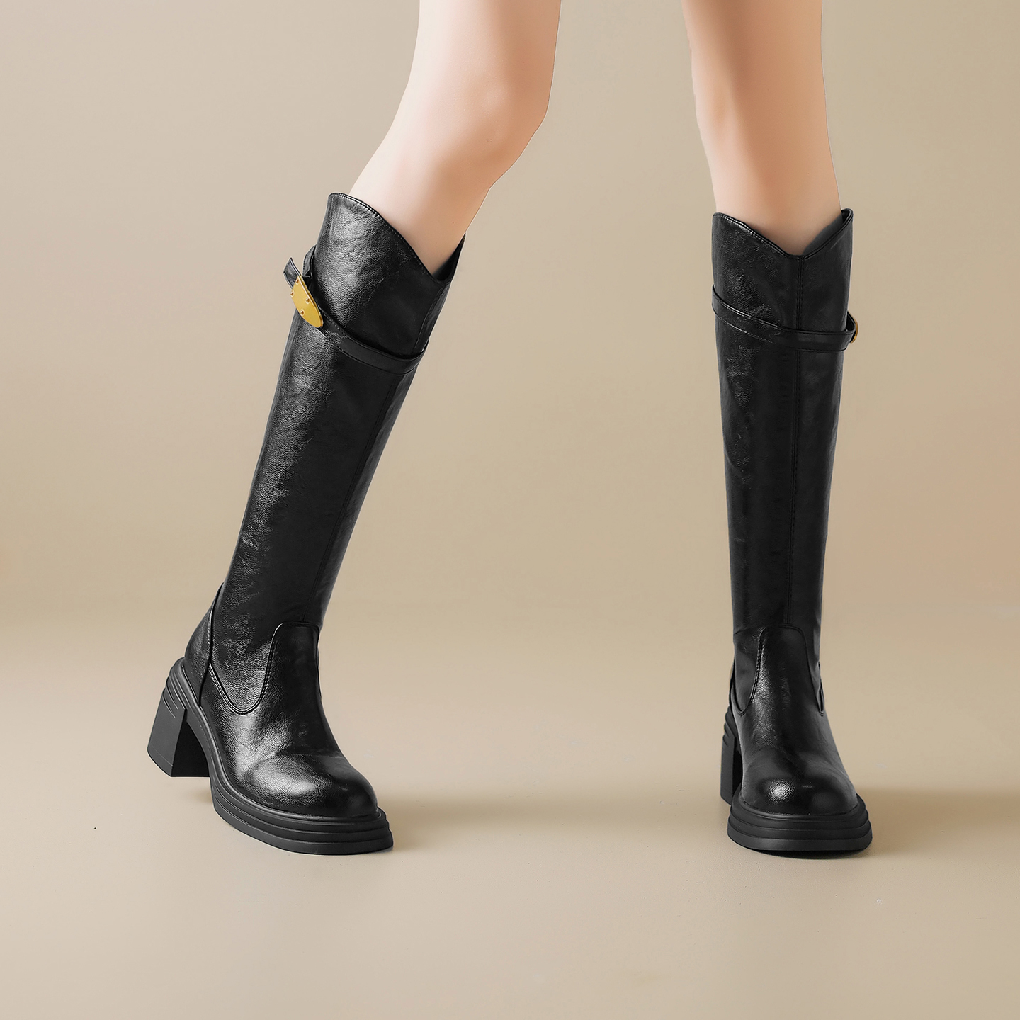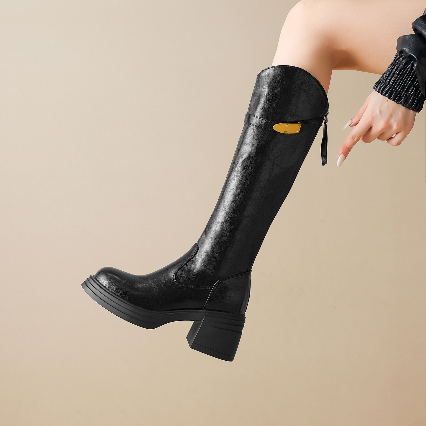 ladyblack粗高跟骑士靴女高筒厚底增高长筒靴小个子大码长靴41-43