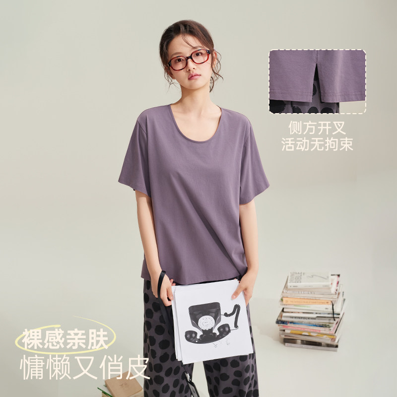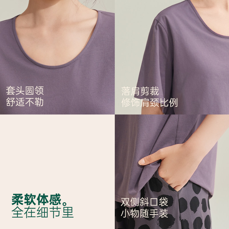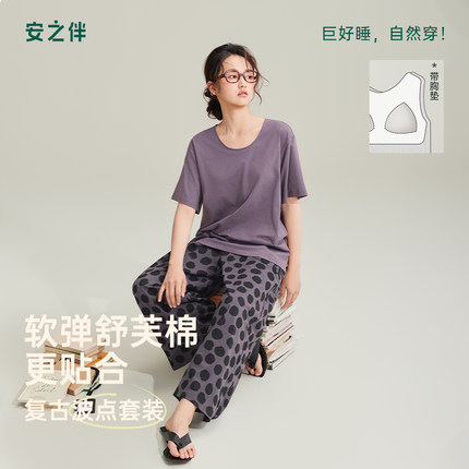 安之伴【巨凉感】睡衣女款夏季莫代尔棉带胸垫短袖夏天长裤家居服