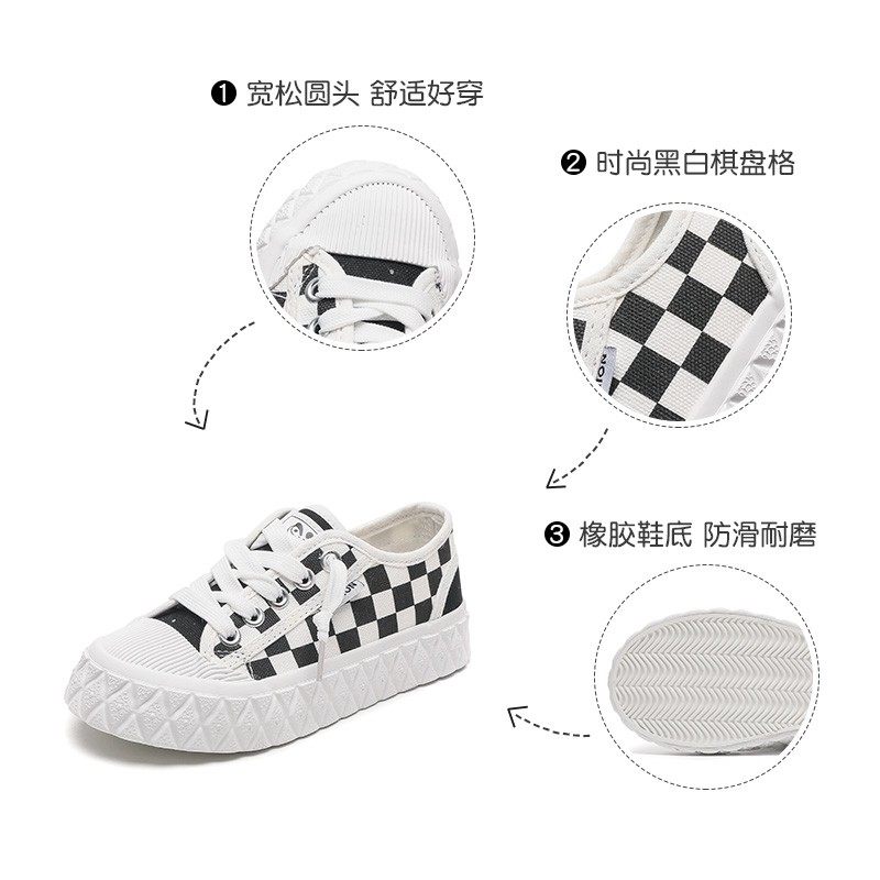 大东帆布鞋秋季休闲圆头帅气棋盘格平底22Q1450童鞋样品色差处理