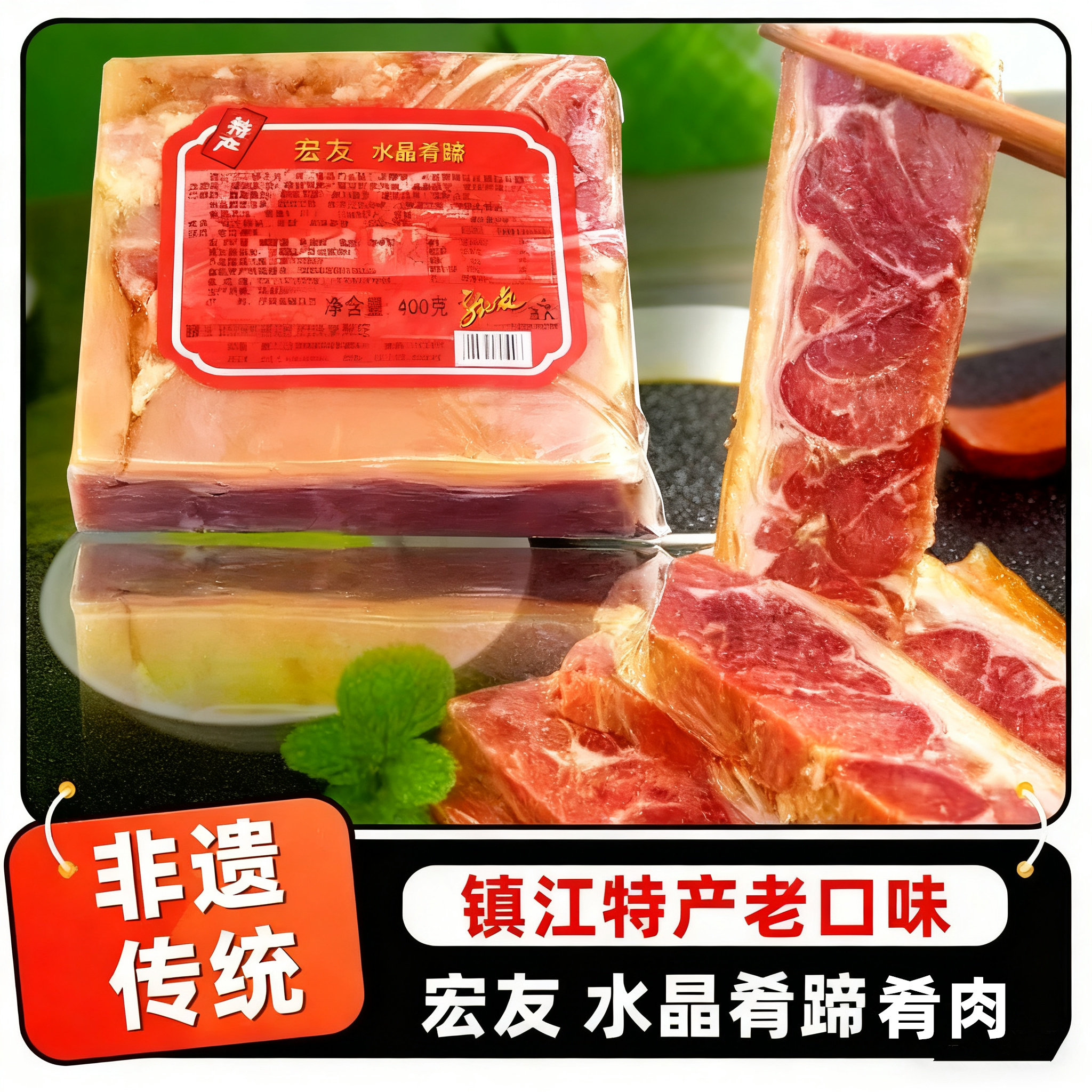 镇江特产宏友水晶肴肉肴蹄400g凉菜熟食卤味猪蹄淆肉真空包装商用