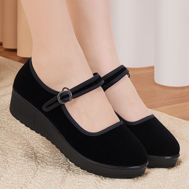 老北京布鞋女官方旗舰店正品冬季新款黑色防滑工作鞋加绒上班棉鞋