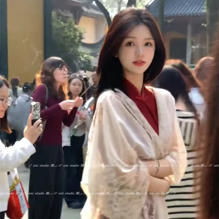 新中式气质披肩早秋蕾丝长款开衫古风配旗袍流苏斗篷新品披风外搭
