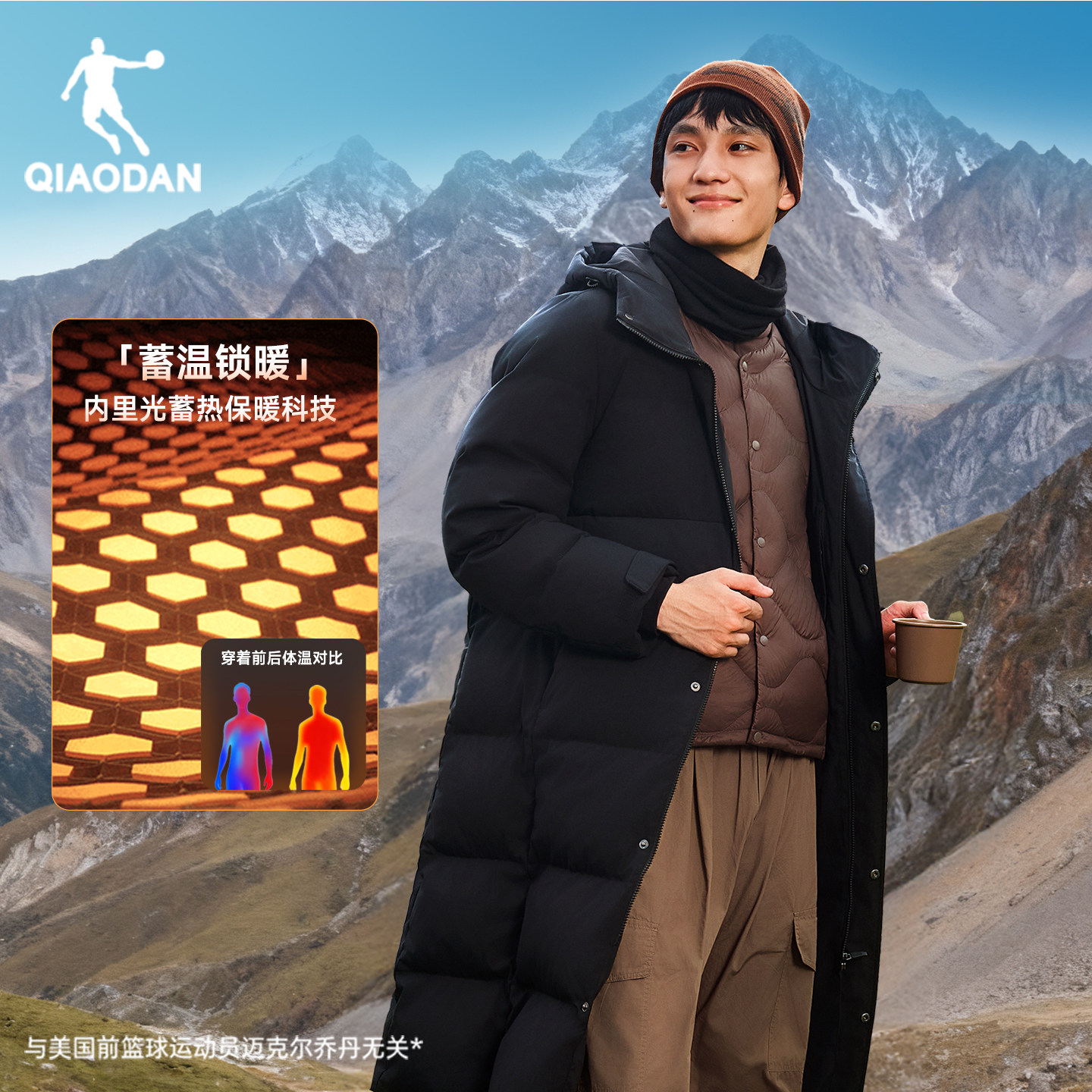 乔丹六防羽绒服长款男士2025冬季新款蓄热双开拉链防风保暖外套