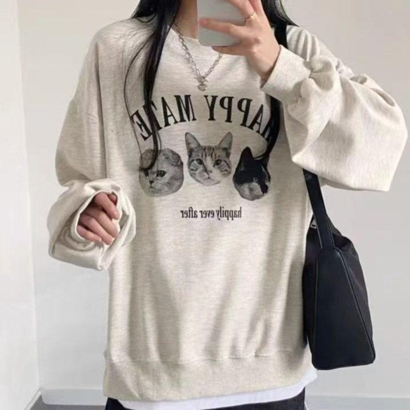 美式复古圆领卫衣女韩系秋冬新款宽松休闲慵懒风加绒无帽套头