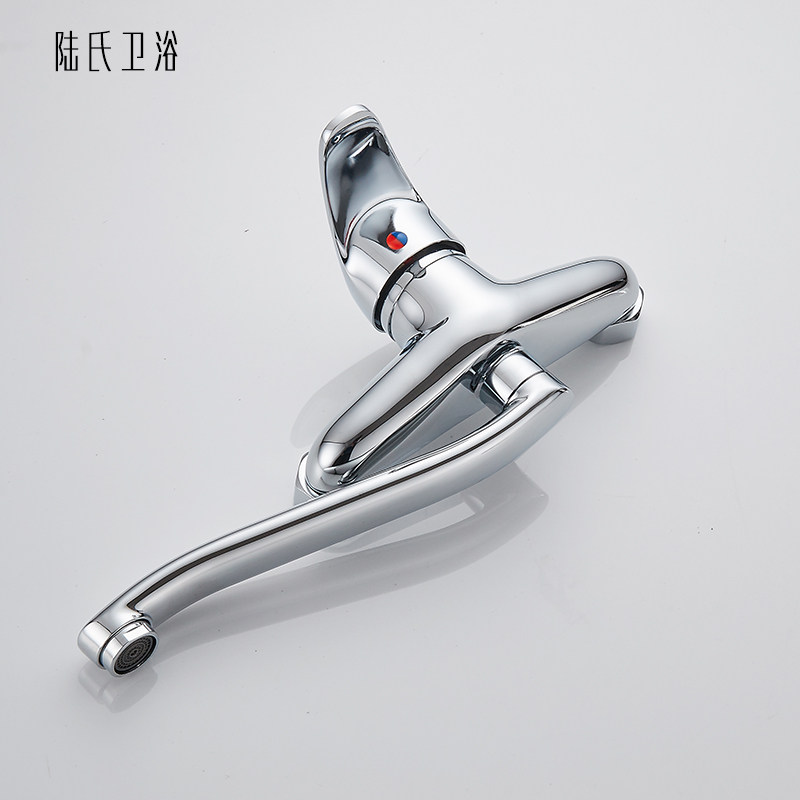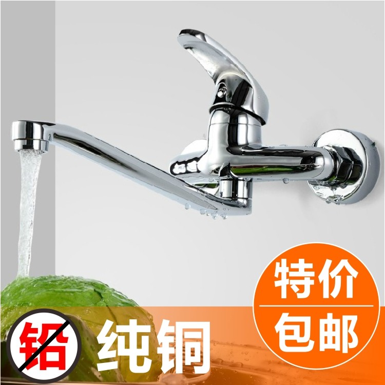 全铜入墙式厨房冷热水龙头单把挂墙式菜盆水槽洗衣池水龙头可旋转