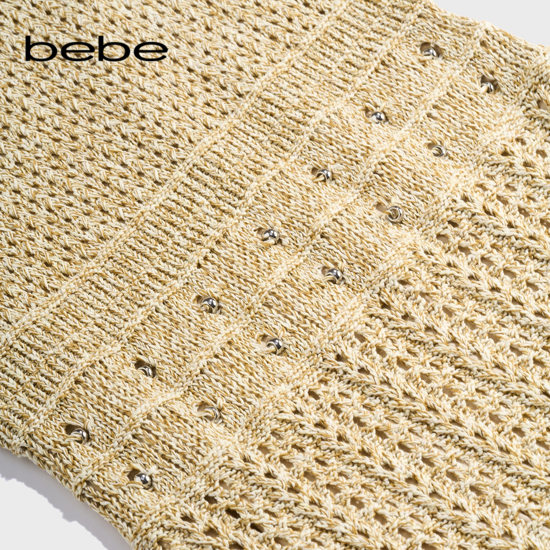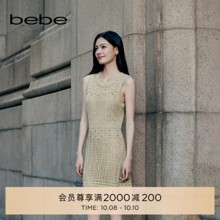 bebe2025秋季新款女士圆领镂空流苏无袖修身背心连衣裙330901