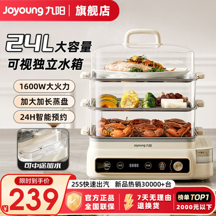 九阳电蒸锅多功能家用三层可预约不锈钢大容量正品蒸箱一体早餐机