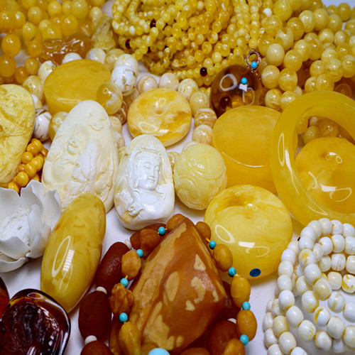 琥珀天然蜜蜡佛珠鸡油黄吊坠雕件原石原矿戒指耳坠手镯白妖花手串