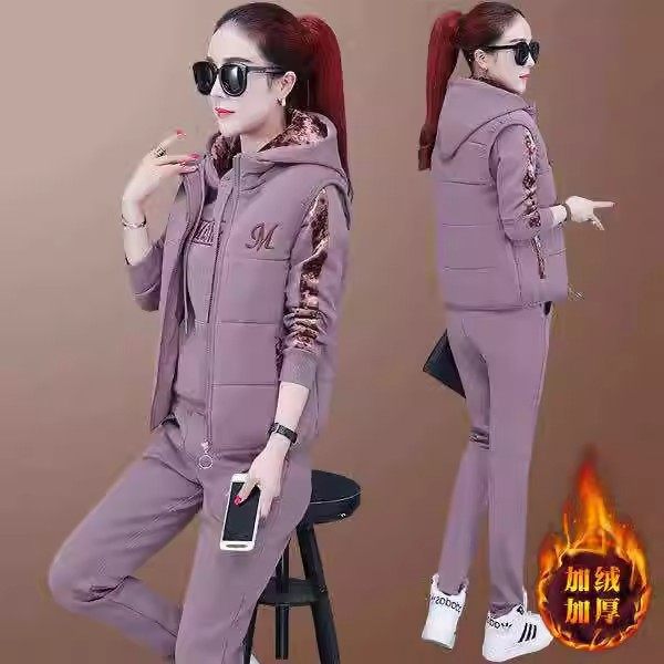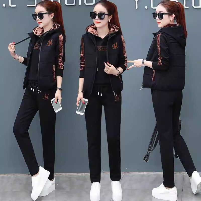 秋冬加厚加绒卫衣三件套女2025冬装新款时尚金丝绒休闲运动服套装