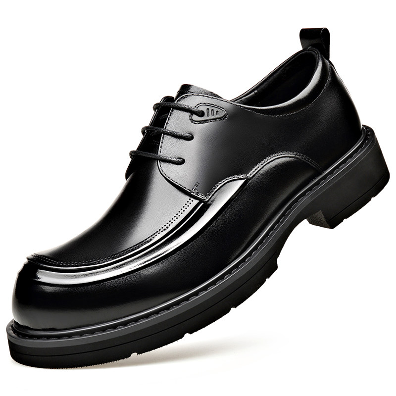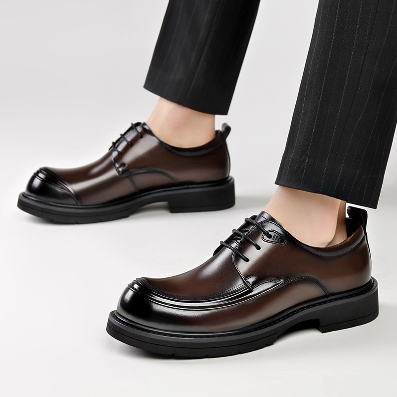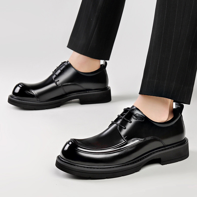 2025秋季新款男士真皮商务正装皮鞋大头鞋系带新郎婚鞋黑色工作鞋