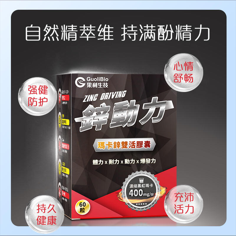 果利生技男性健康滋补强身动力锌动力 玛卡锌双活胶囊60颗/盒