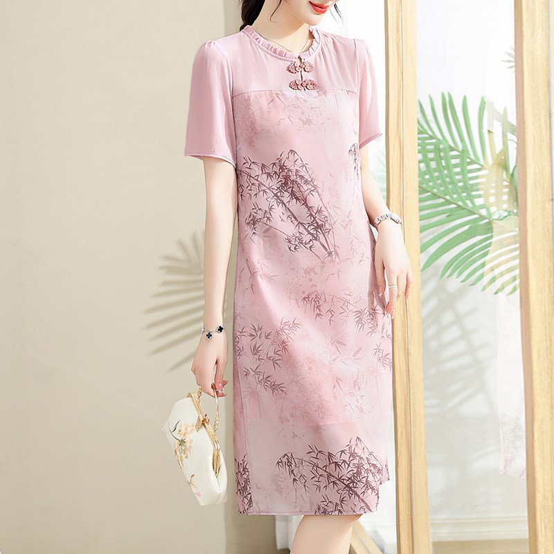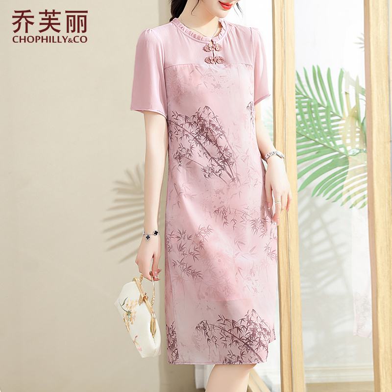 妈妈装夏款新中式旗袍连衣裙2023新款中老年女装夏装短袖气质裙子