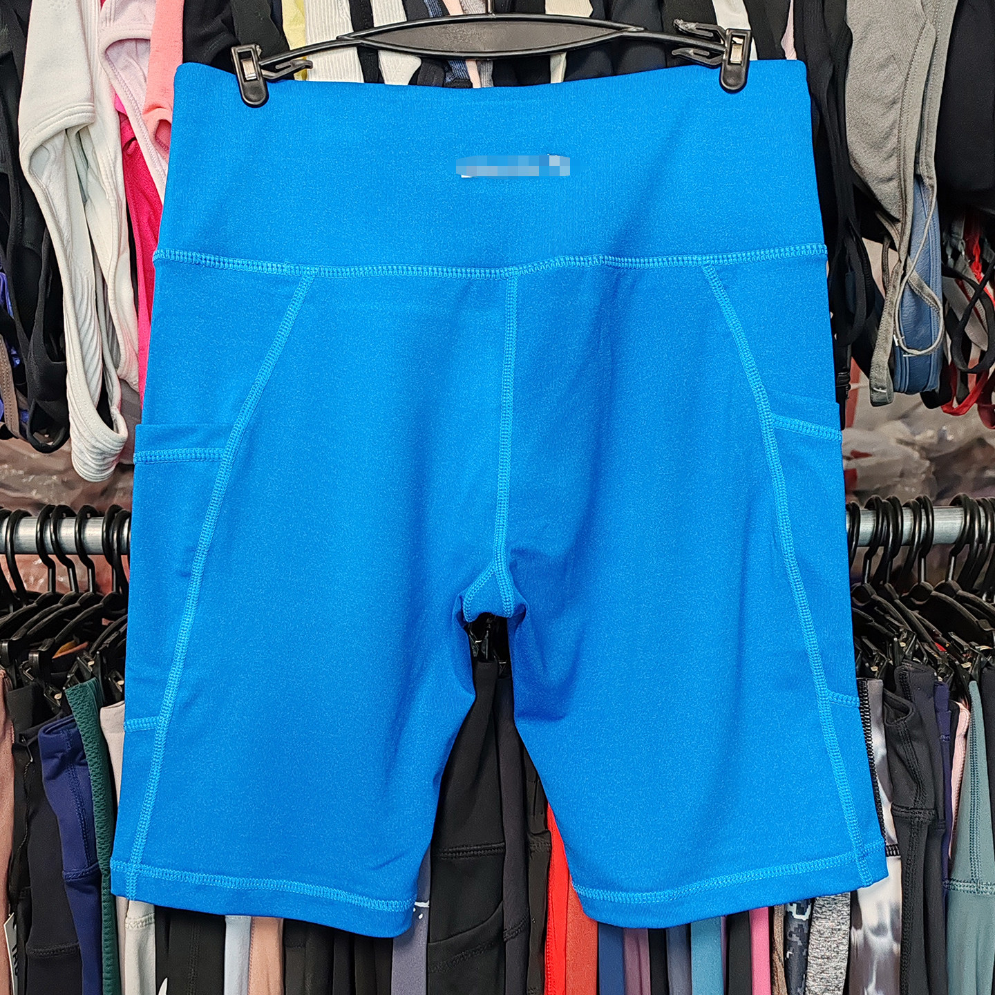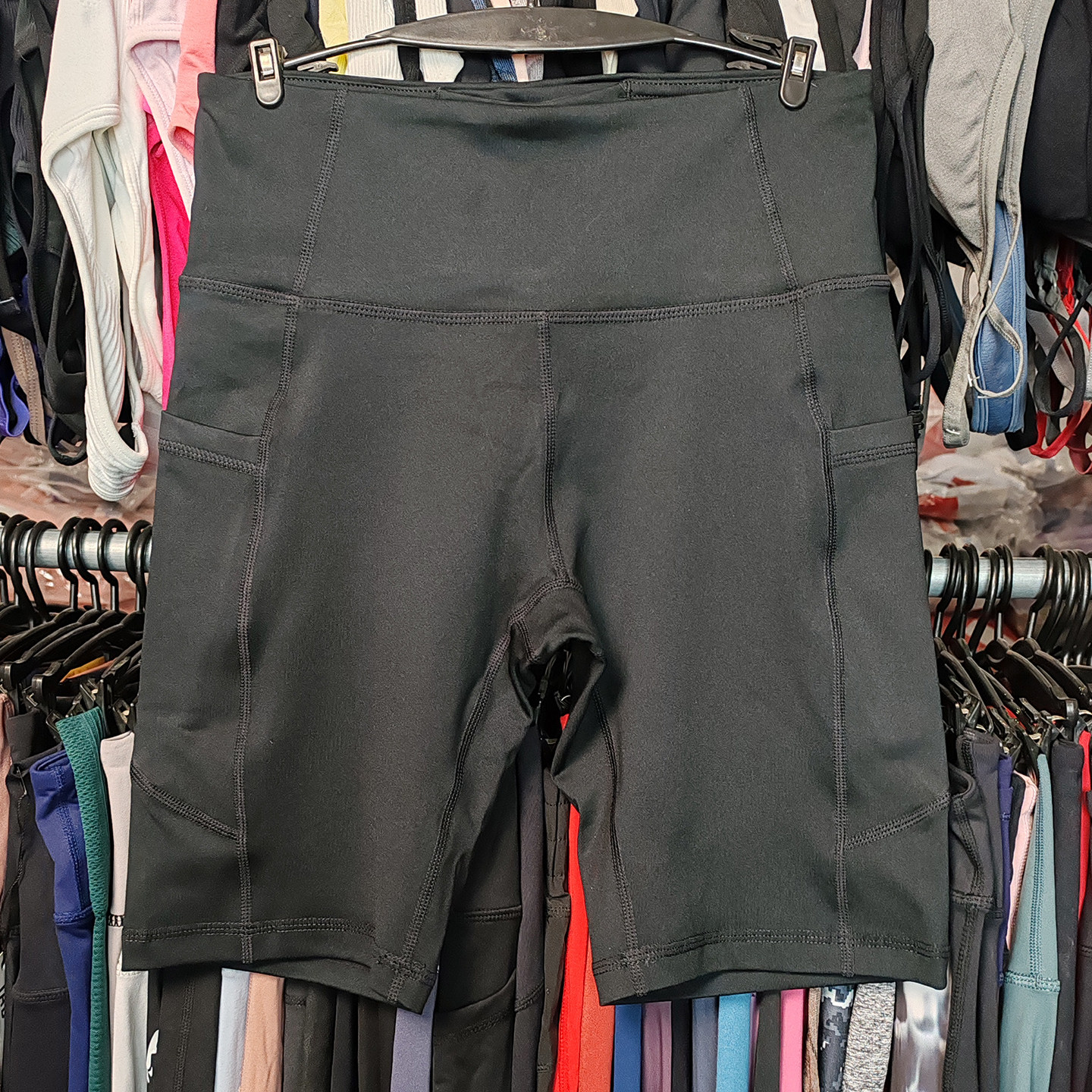 外贸健身短裤瑜伽运动速干紧身透气高腰弹跑步口袋大码四分裤女式